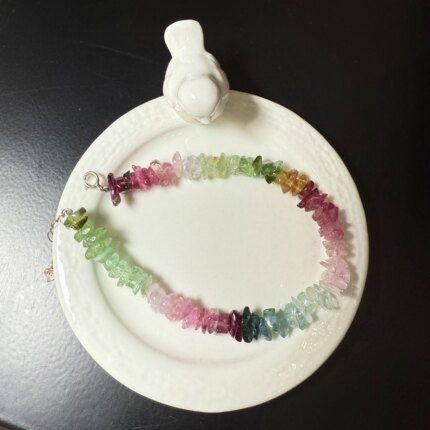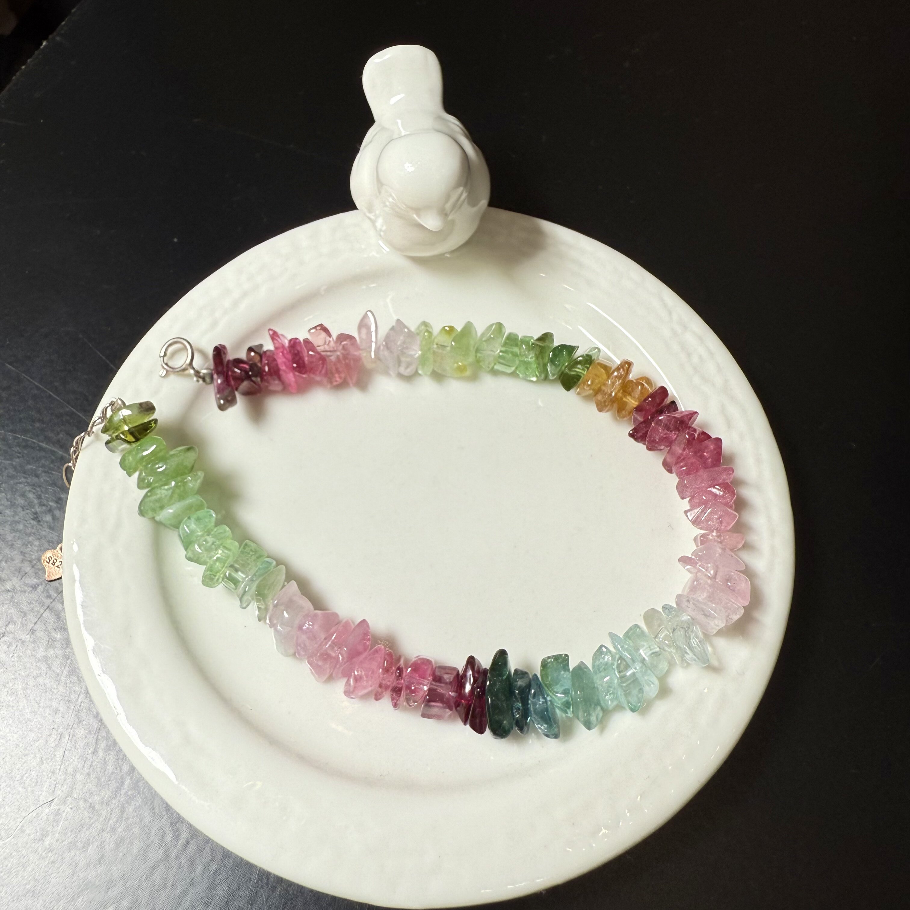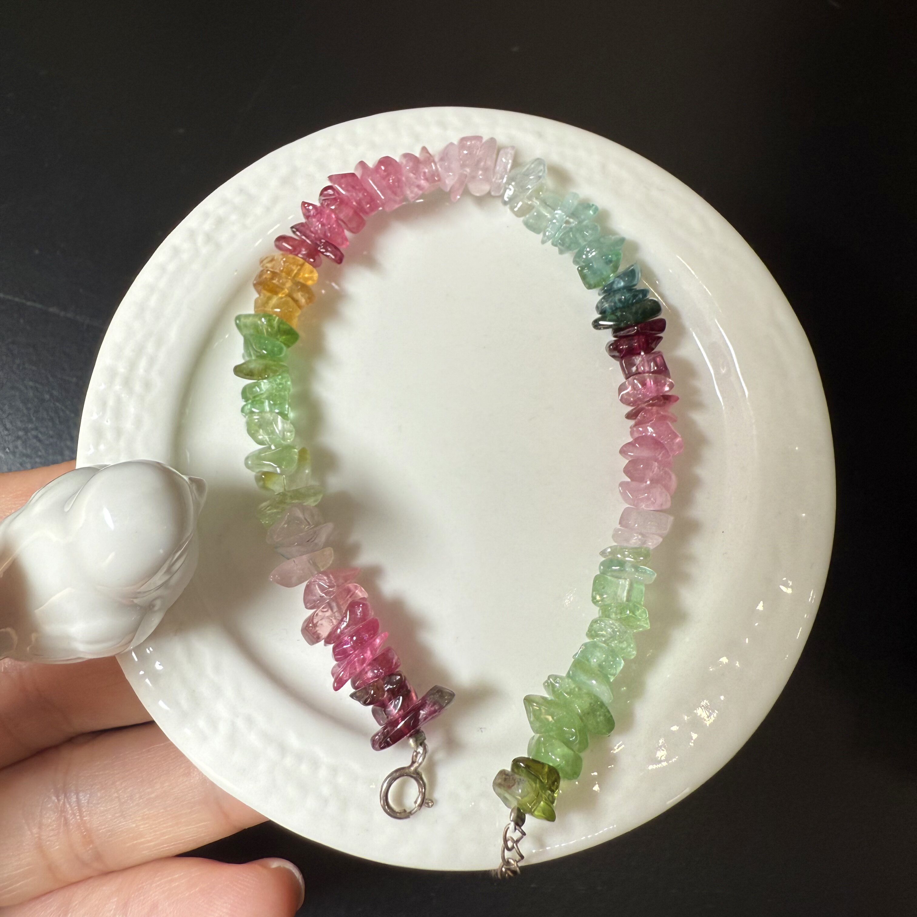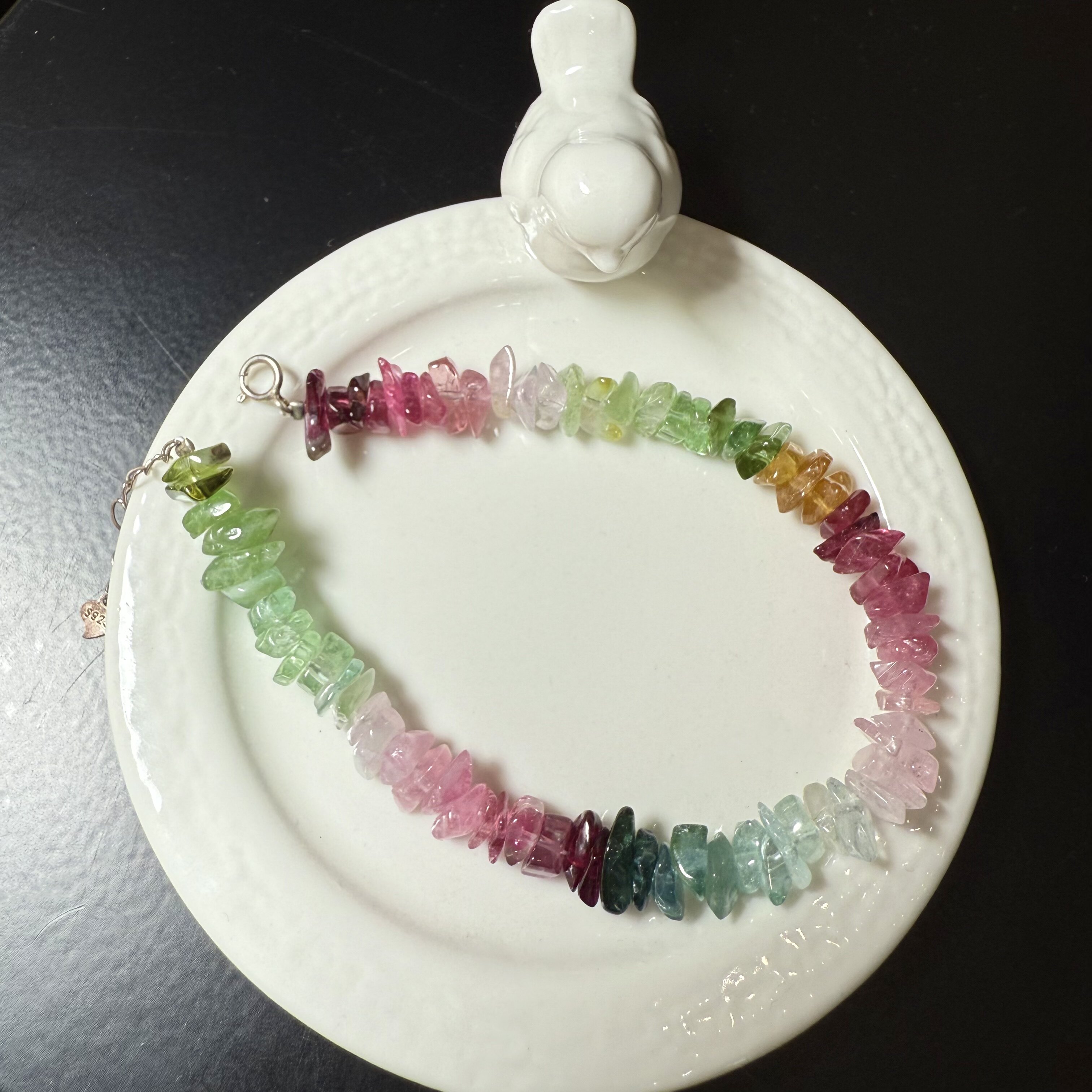 H527碧玺彩虹色随形碎块碎石碧玺不规则手链 手串宝石天然证书