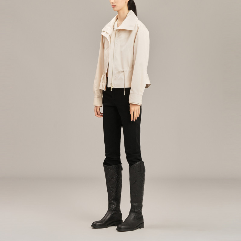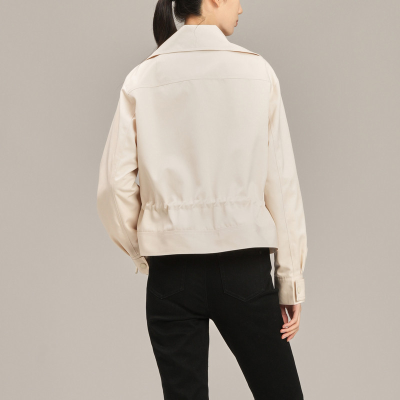 XG雪歌米白色中长款休闲风衣2025春季新款抽绳收腰设计长袖外套女