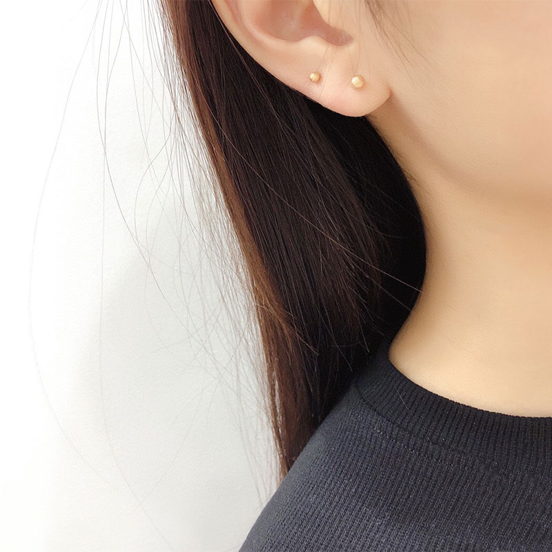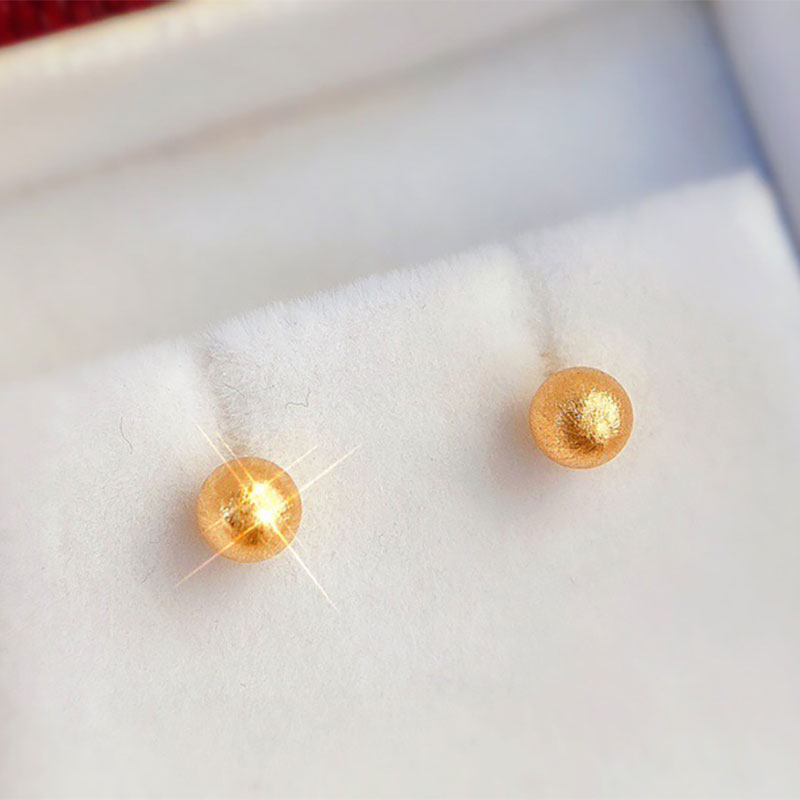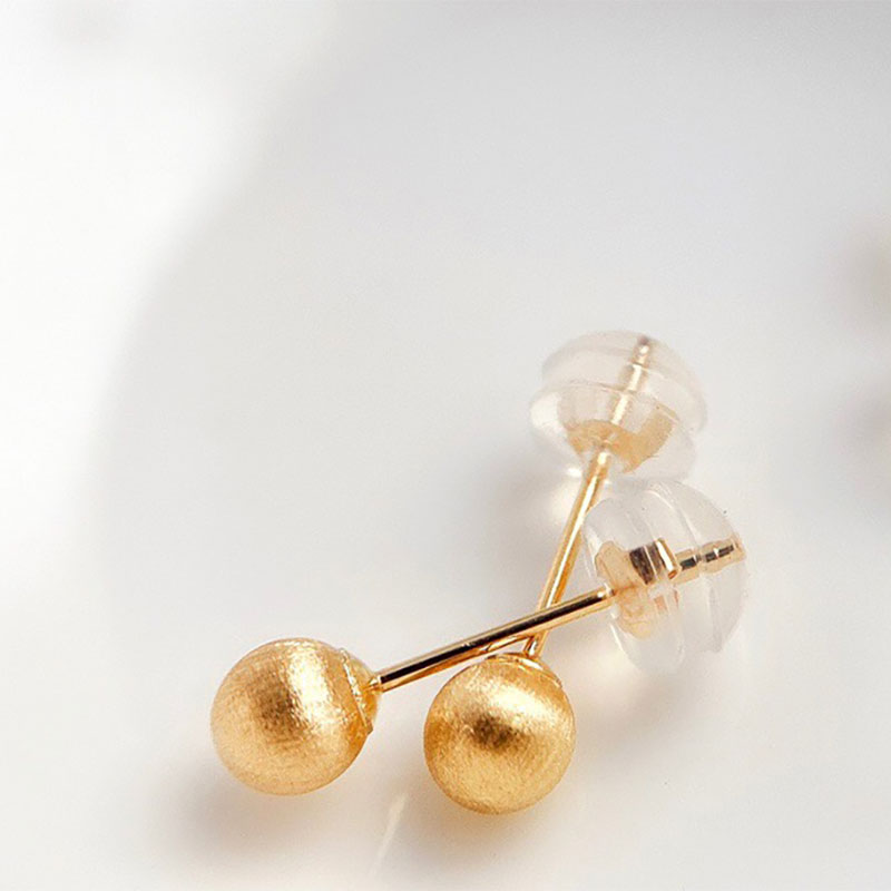 美梓珠宝18K黄金拉丝工艺耳环空姐豆豆耳养耳洞圆球耳钉 百搭舒适