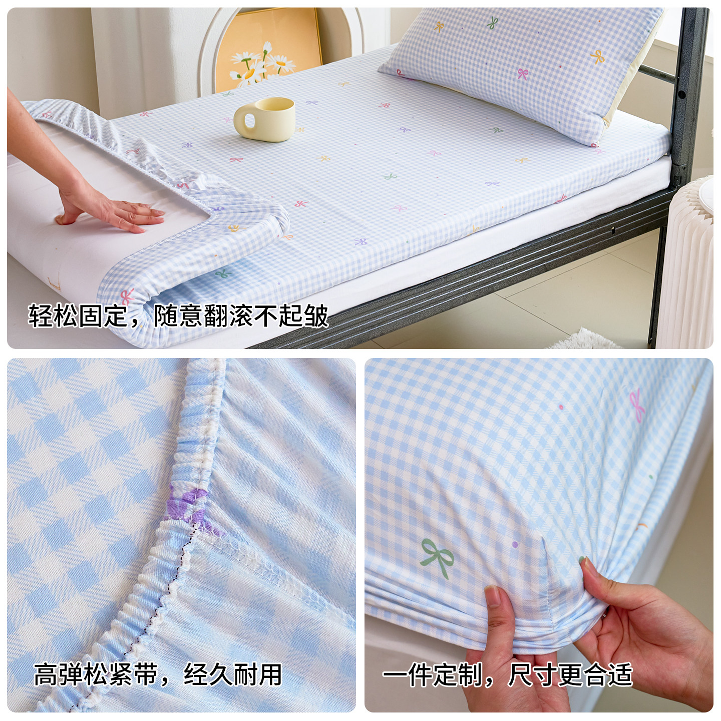 定制纯棉床笠单件100全棉床单学生宿舍1.2/1.5席梦思床垫保护套罩