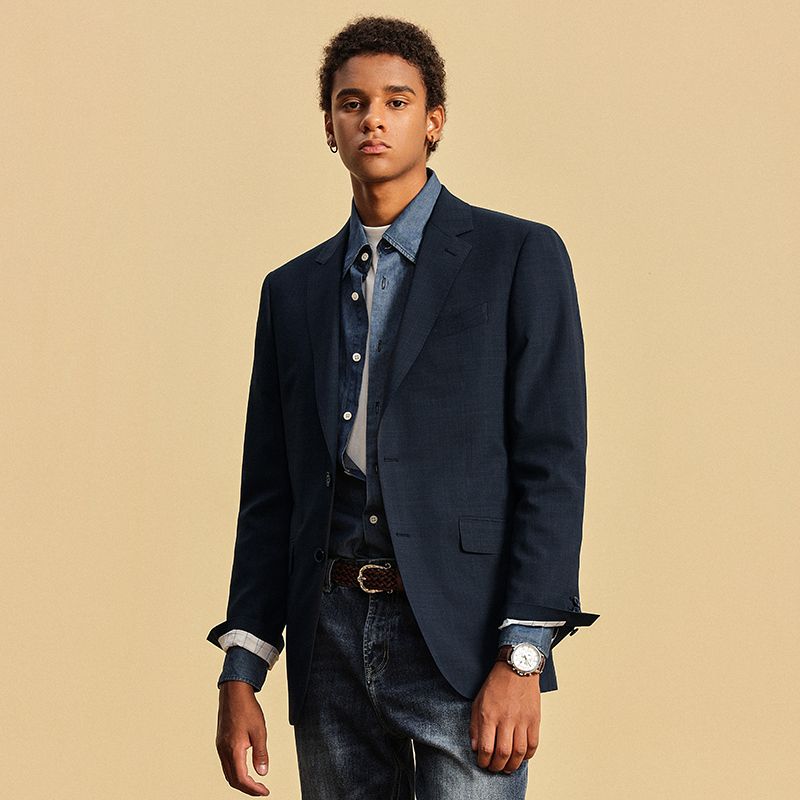 JDV商场同款藏青色平驳领西装