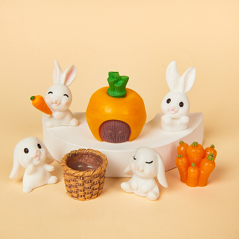 网红小兔子蛋糕装饰摆件迷你白兔胡萝卜田园系兔宝宝周岁插牌插件