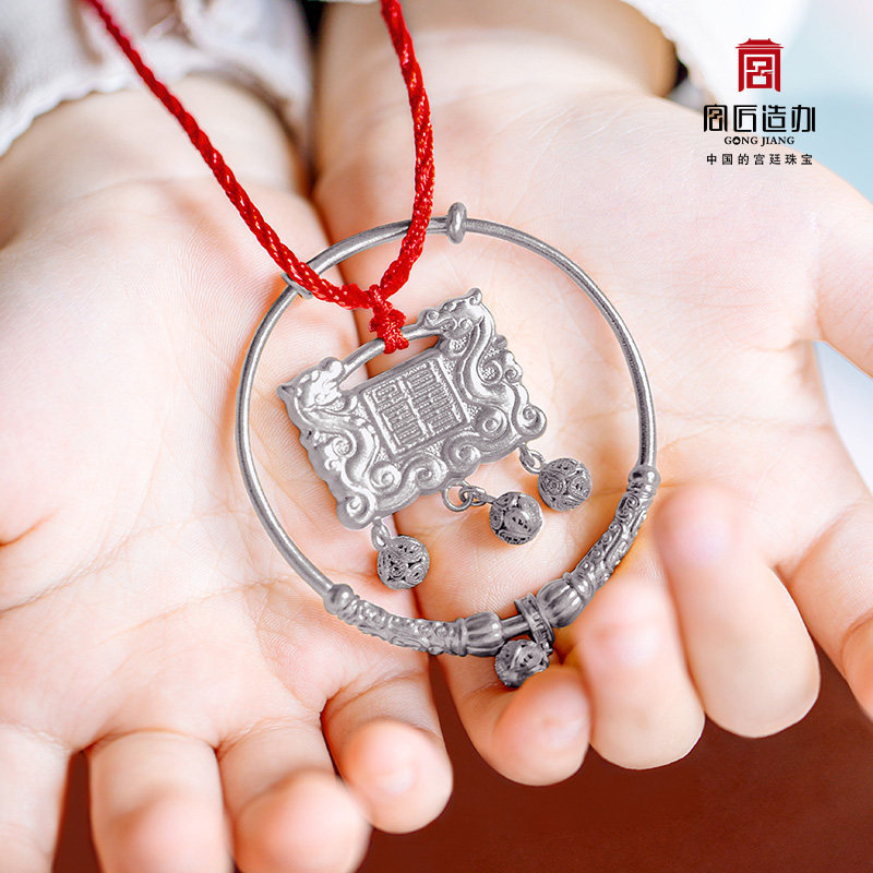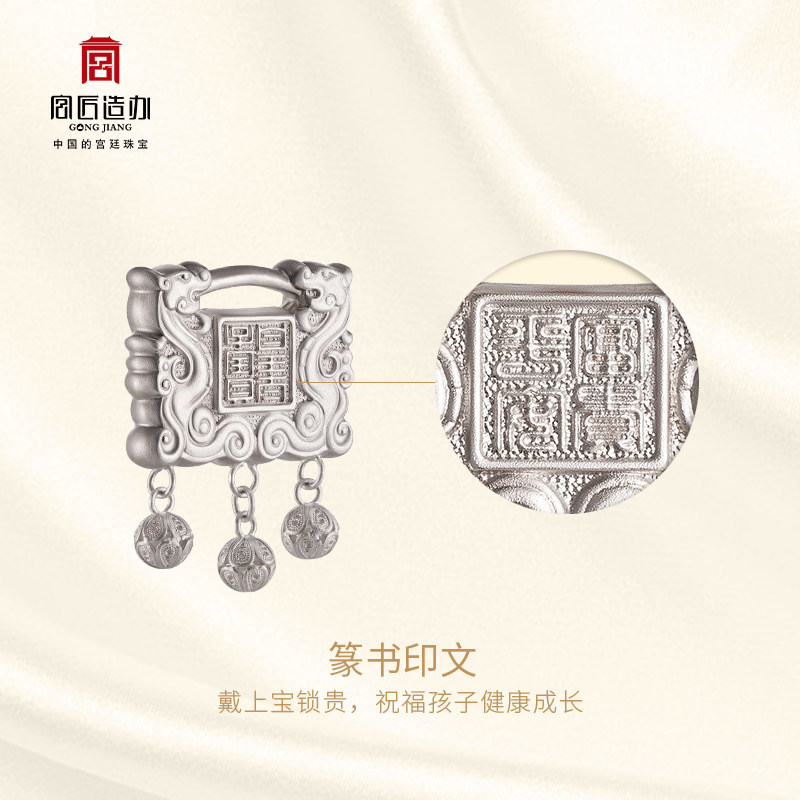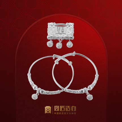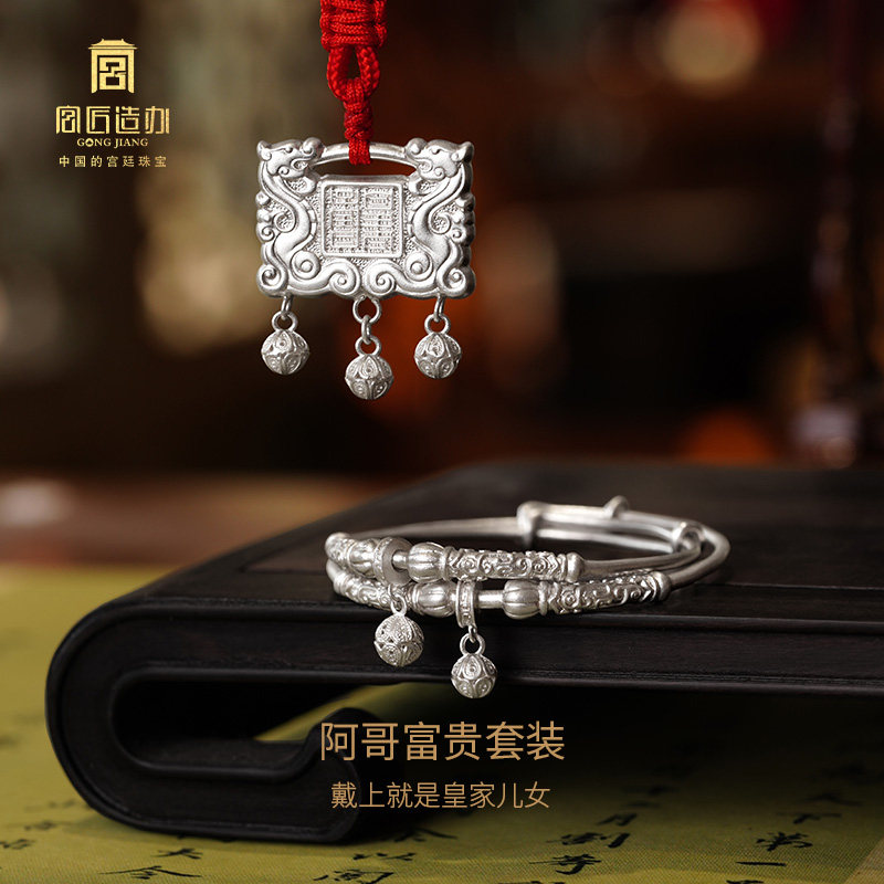 宫匠造办格格/阿哥富贵套装银锁宝宝长命锁宝宝锁手镯周岁礼套装