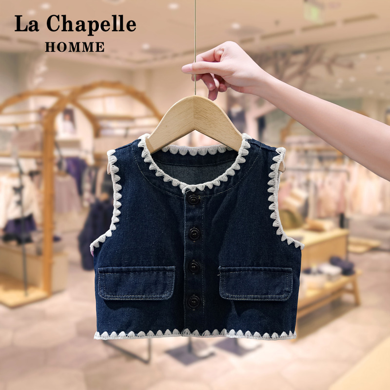 拉夏贝尔童装女童套装秋季2025新款儿童宝宝牛仔马甲三件套春秋装