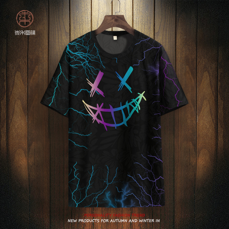 冰丝T恤男国潮笑脸T恤男小恶魔短袖透气速干半袖上衣大码潮牌上衣