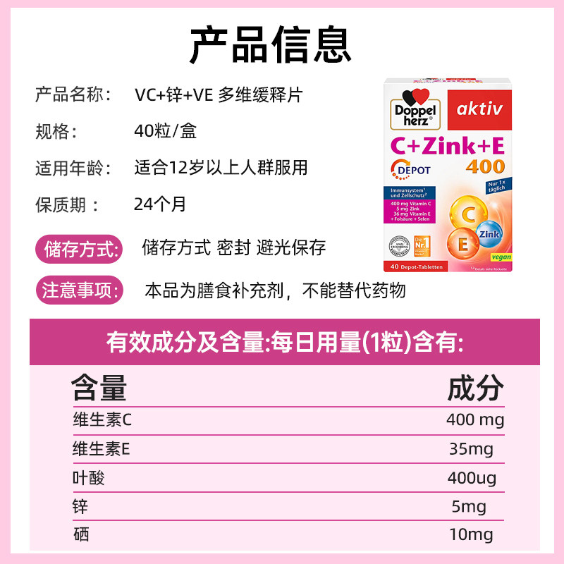 【自营】3盒德国双心维生素C+锌+VE美白淡斑提升自护力多维缓释片