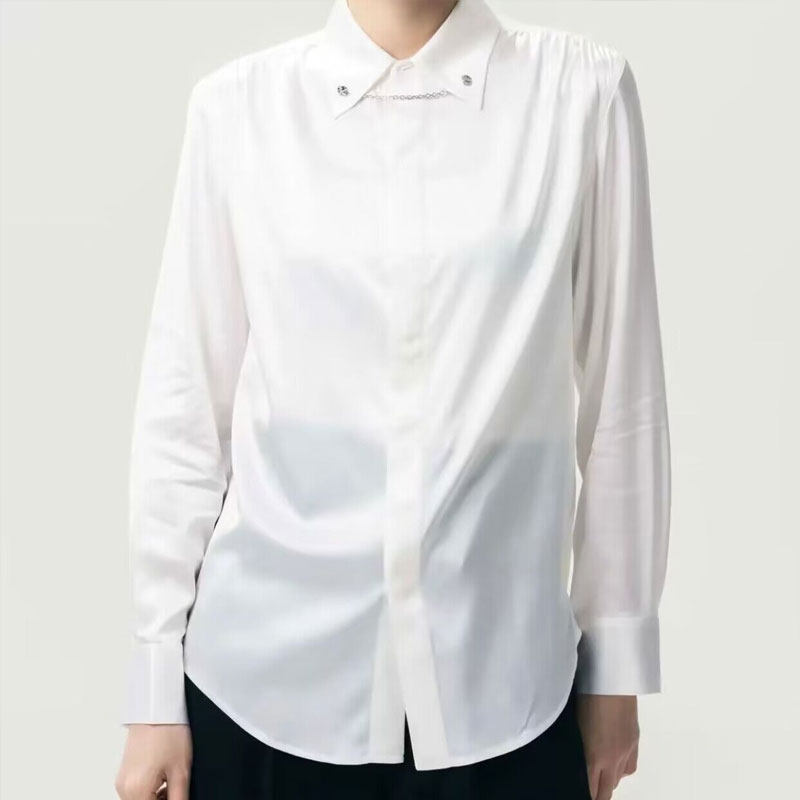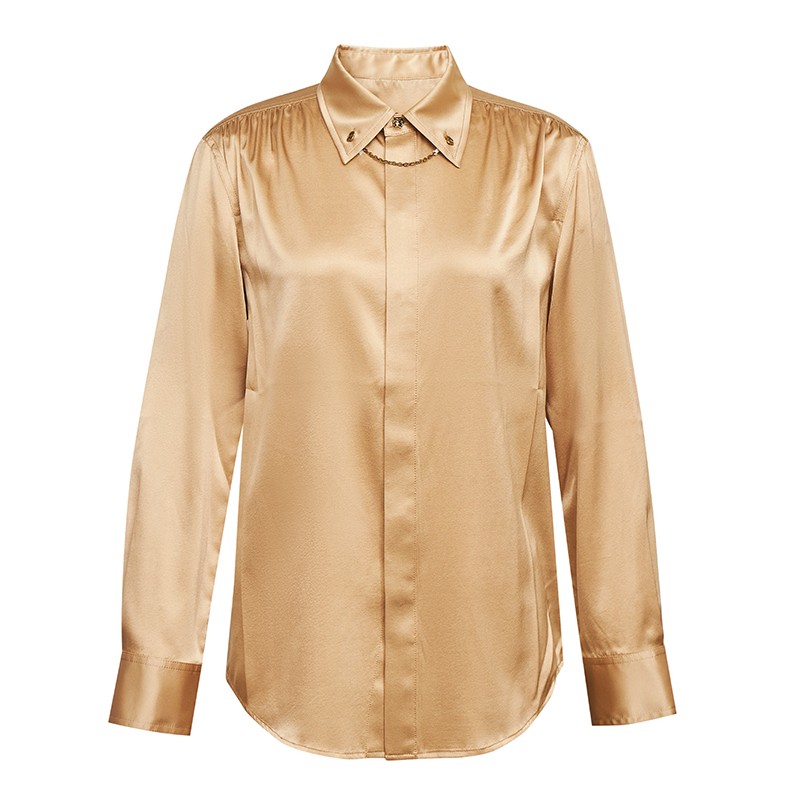 气质蚕丝金属链扣长袖衬衫
