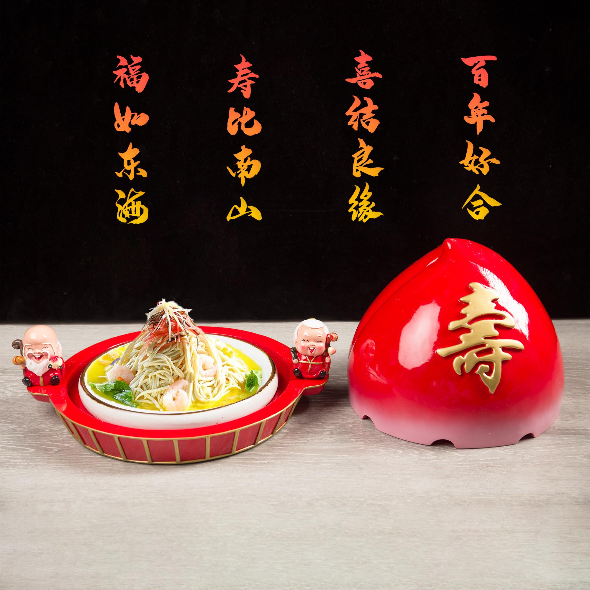 网红酒店饭厅生日宴会干冰特色寿桃餐具寿比南山意境菜创意福禄盘