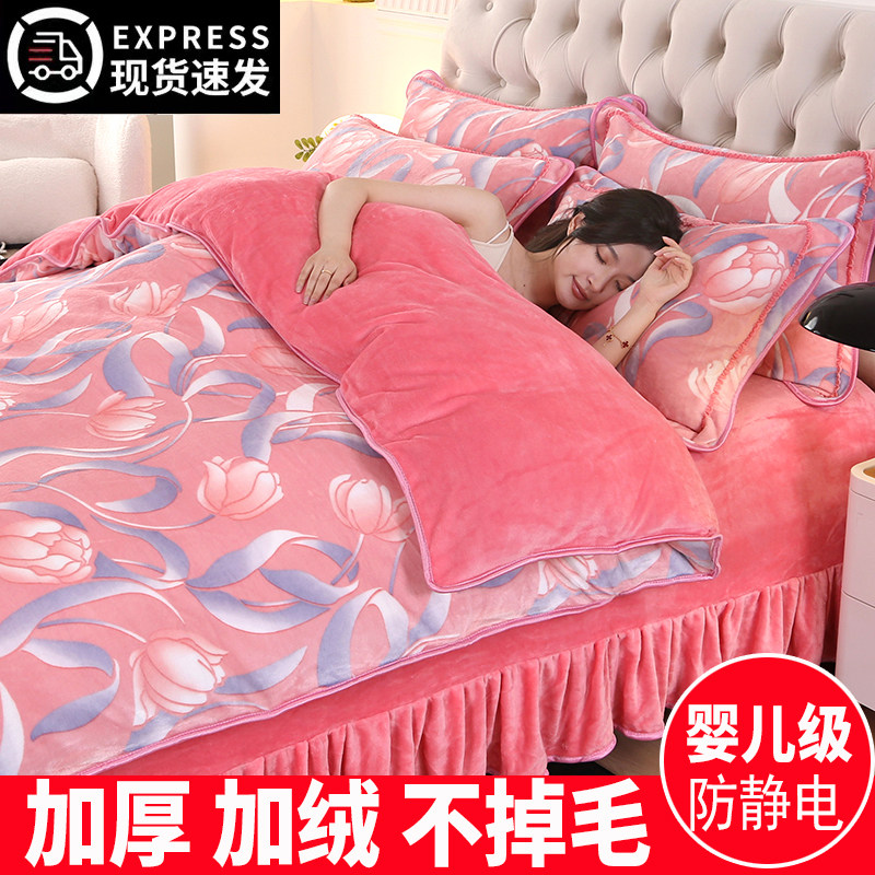 冬季牛奶绒四件套双面珊瑚绒床单被套法兰绒冬天加厚床裙床上用品