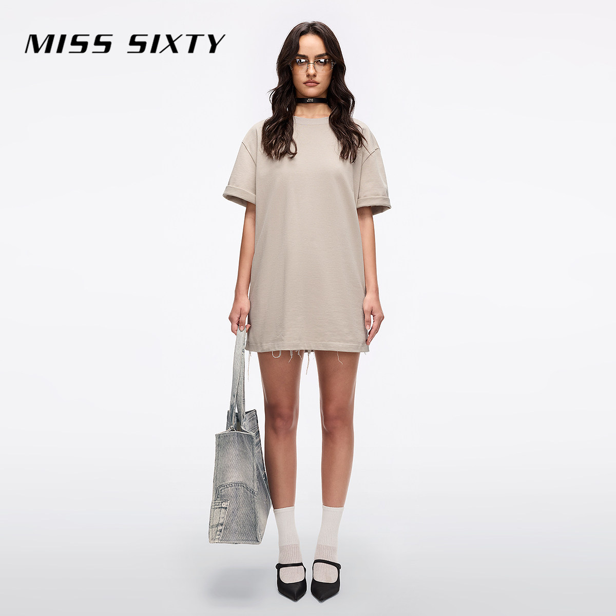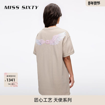 【天使系列】Miss Sixty2025夏季新款短袖T恤女钉珠印花宽松落肩