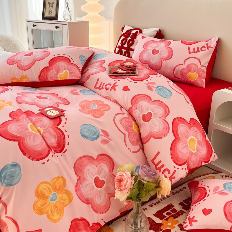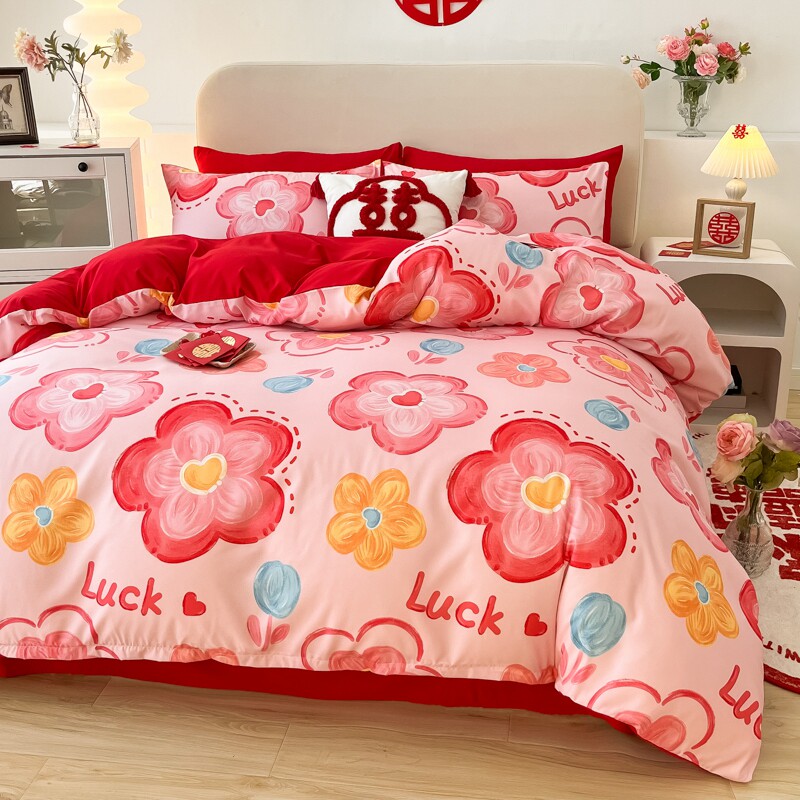 简约婚庆四件套全棉红色床单被套结婚床上用品新婚房喜被