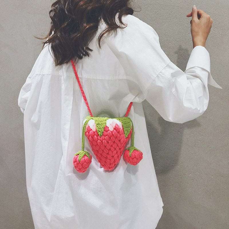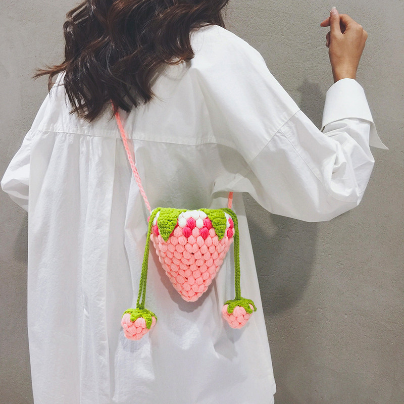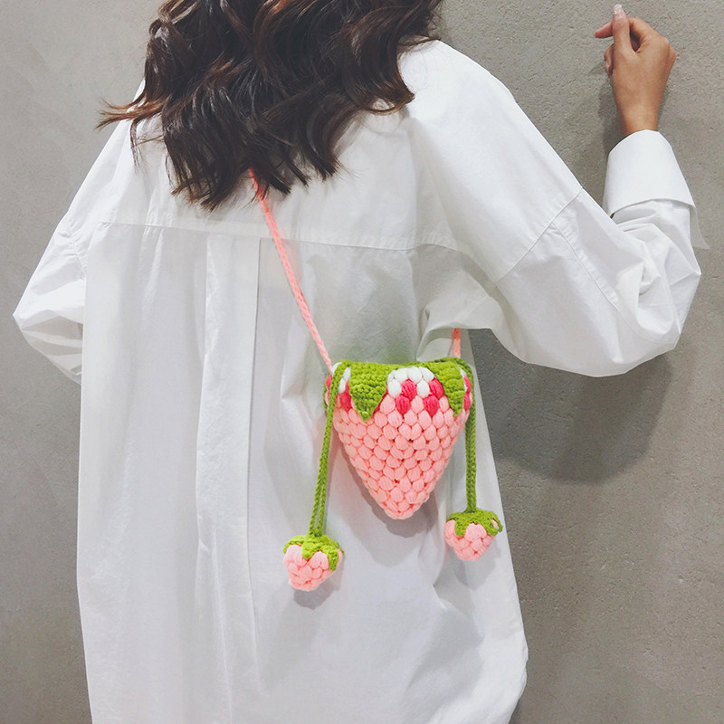 玲澜可爱小清新草莓针织斜挎小包