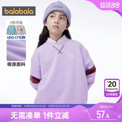 巴拉巴拉儿童卫衣中大童宝宝打底衫春秋新款童装男童女童宽松上衣