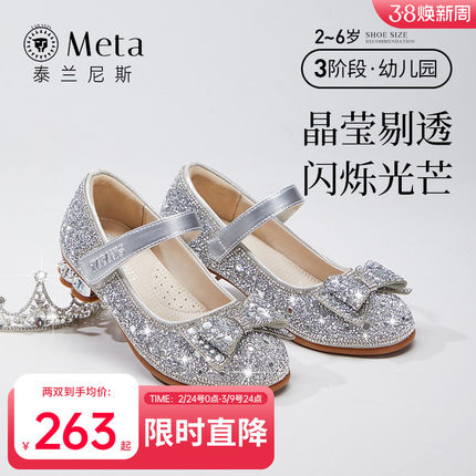 泰兰尼斯meta春夏童鞋女童水晶鞋儿童演出鞋软底闪亮大童公主鞋子