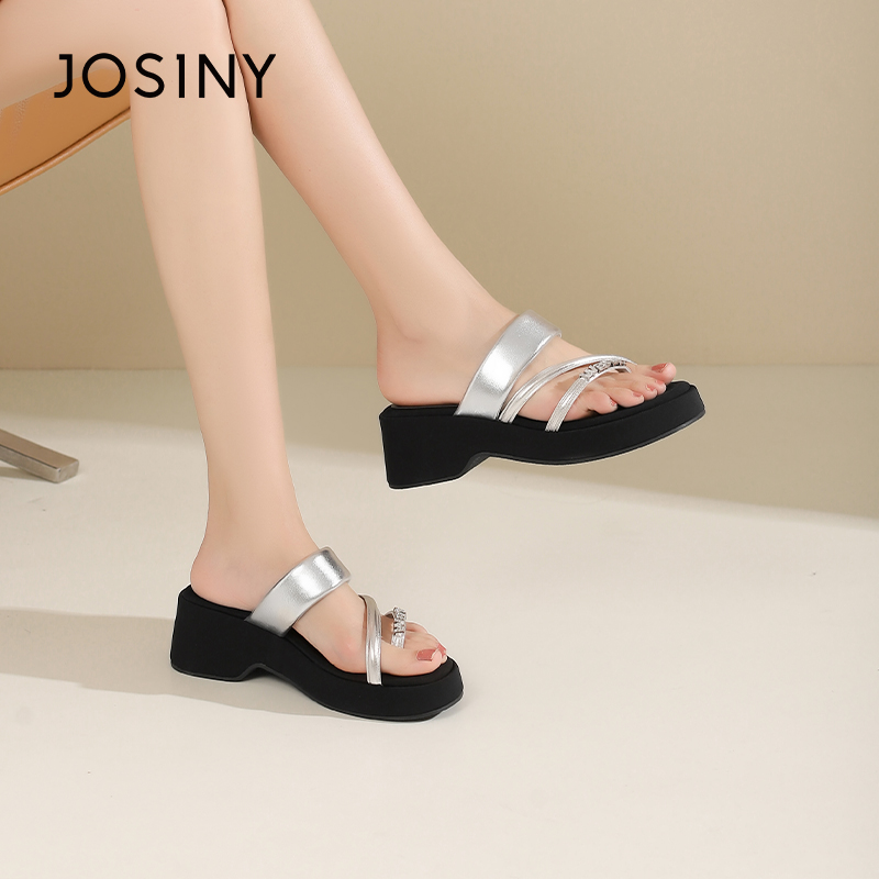 卓诗尼坡跟拖鞋女鞋2025夏款新款人字拖厚底外穿凉拖鞋女中跟高跟