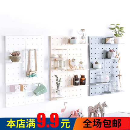 洞洞板家用木质北欧层板收纳厨房实木装饰墙壁墙上壁挂隔板置物架