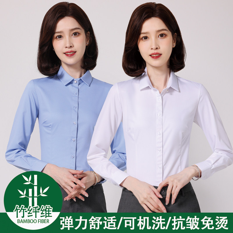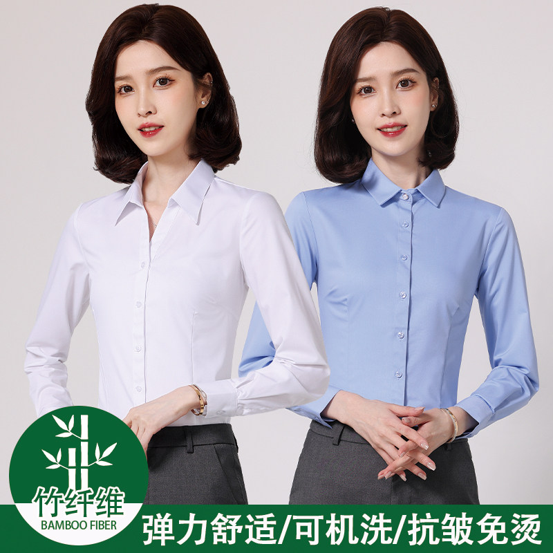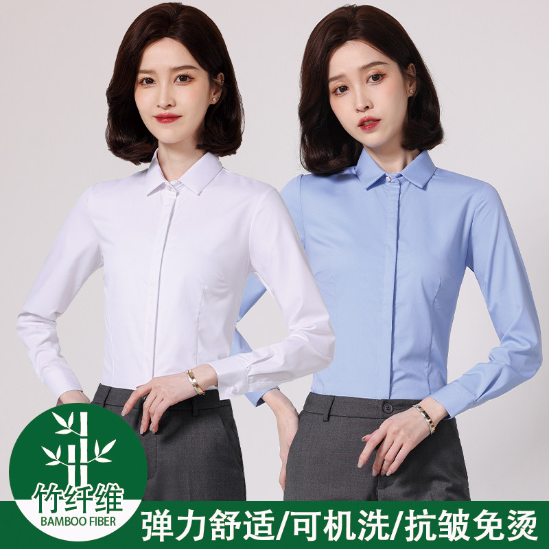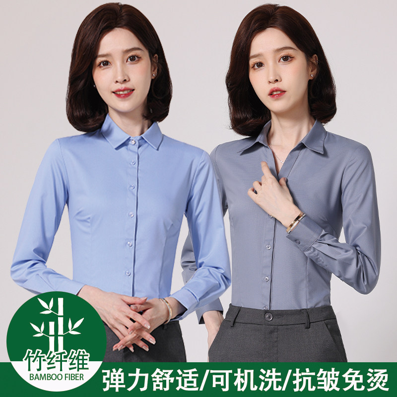 竹纤维职业白衬衫女长袖春秋新款商务正装面试工作服弹力灰色衬衣