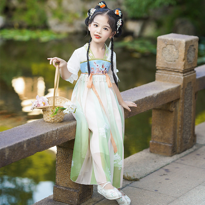 汉服女童长袖夏季新款女孩古装襦裙连衣裙中国风仙女汉服工厂直销