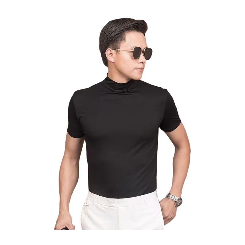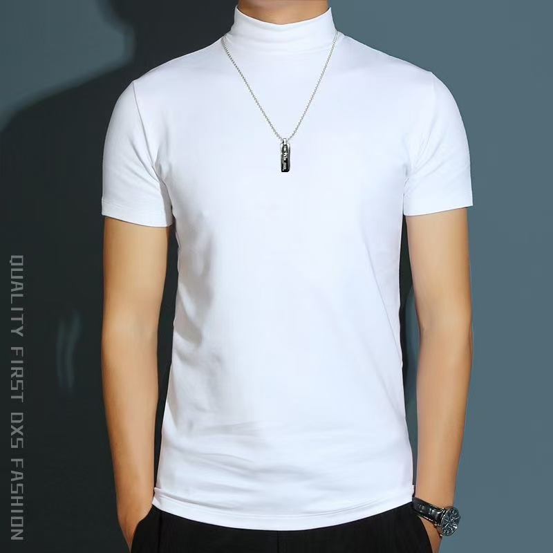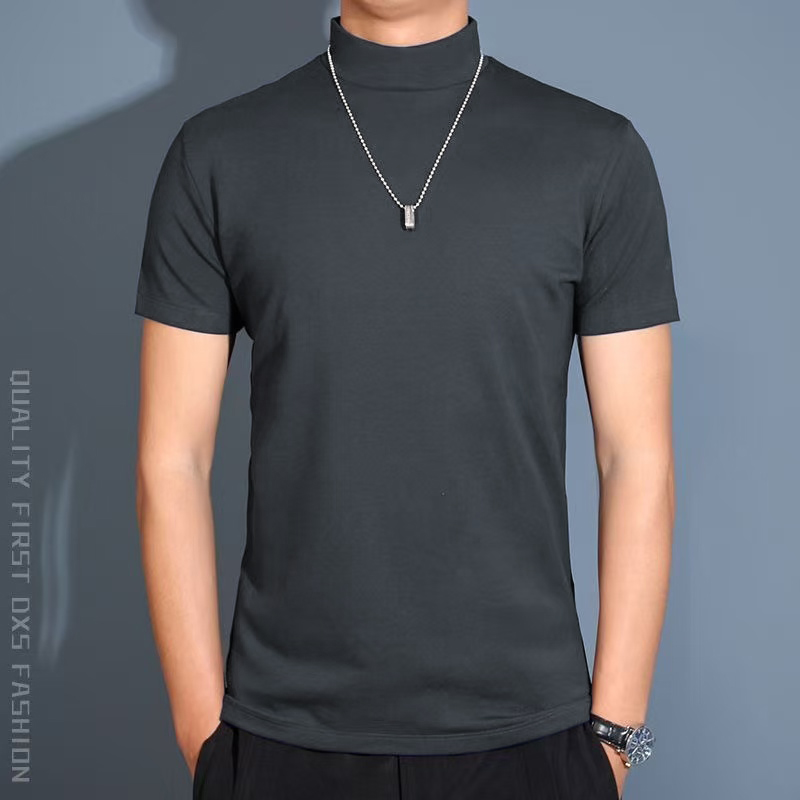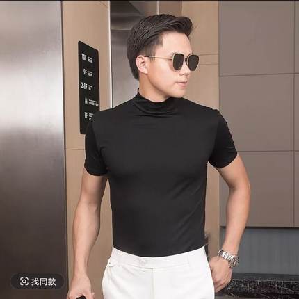 半高领短袖男t恤纯色中领打底衫薄款半袖圆领男士上衣修身莫代尔