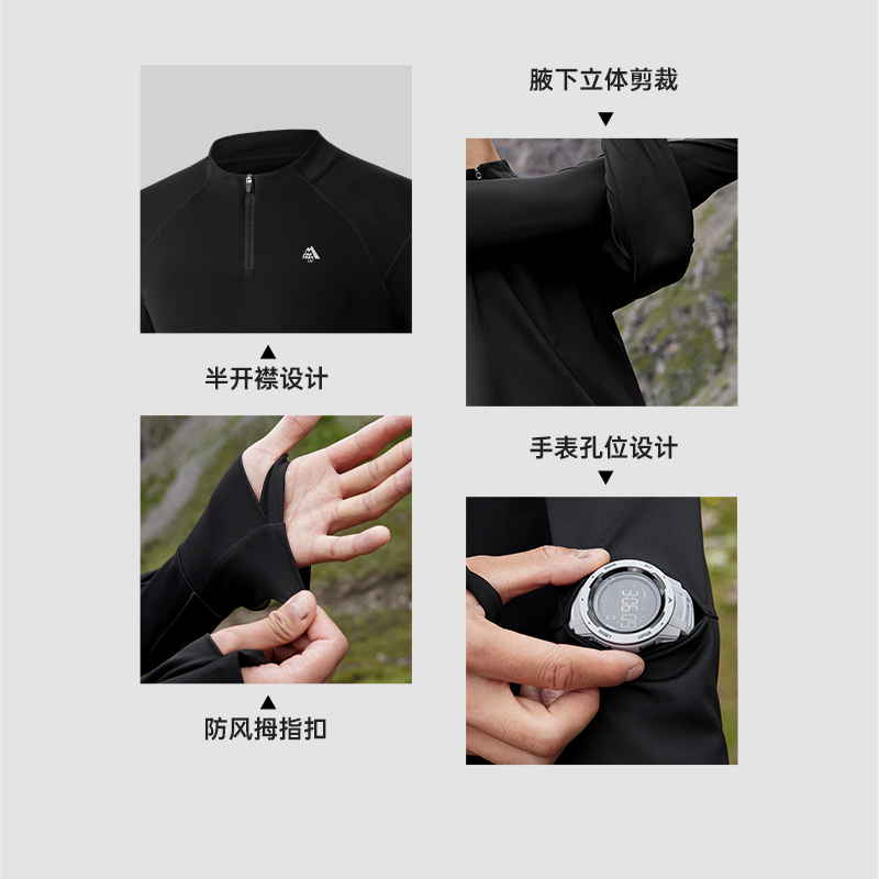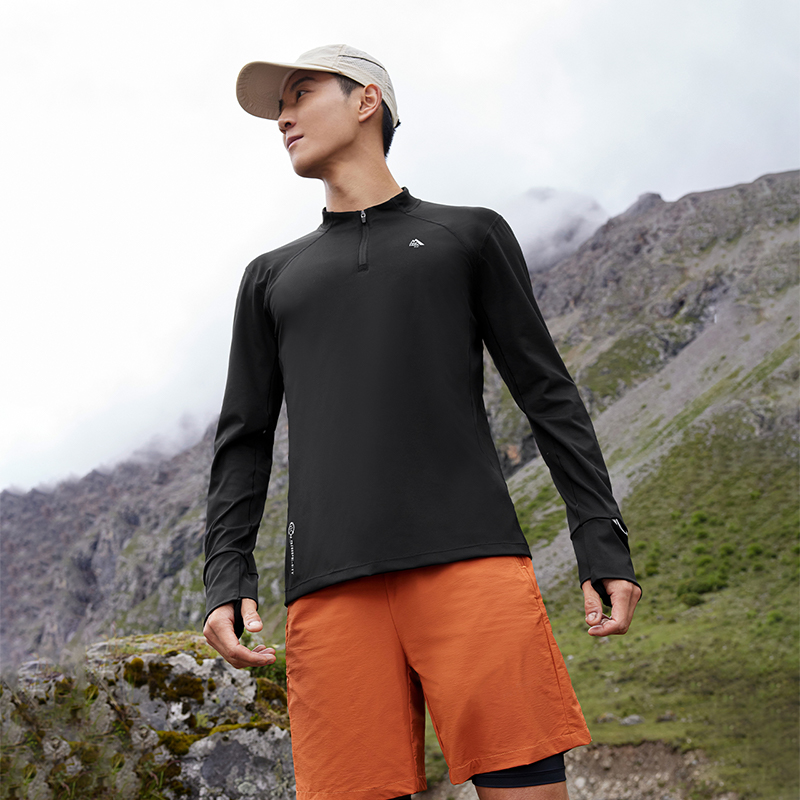 361运动上衣男2024秋季新款速干立领半开襟长袖T恤男士修身跑步服