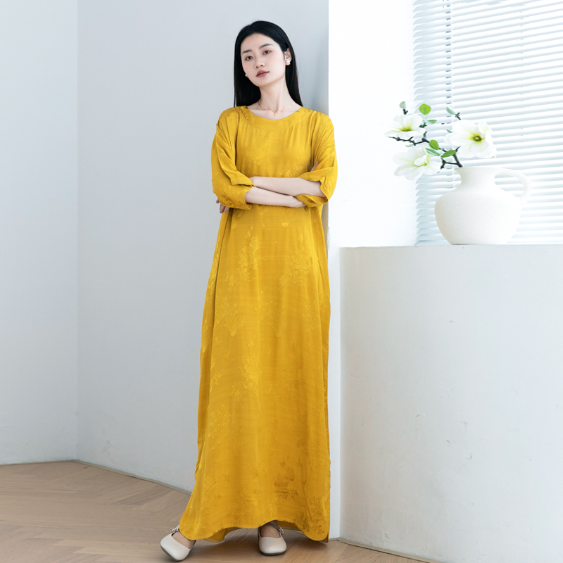 自制 重磅国风天丝提花袍子连衣裙原创夏 新中式宽松显瘦禅意长裙