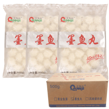 千年记墨鱼丸500克真空双层袋装10KG/箱商用餐饮