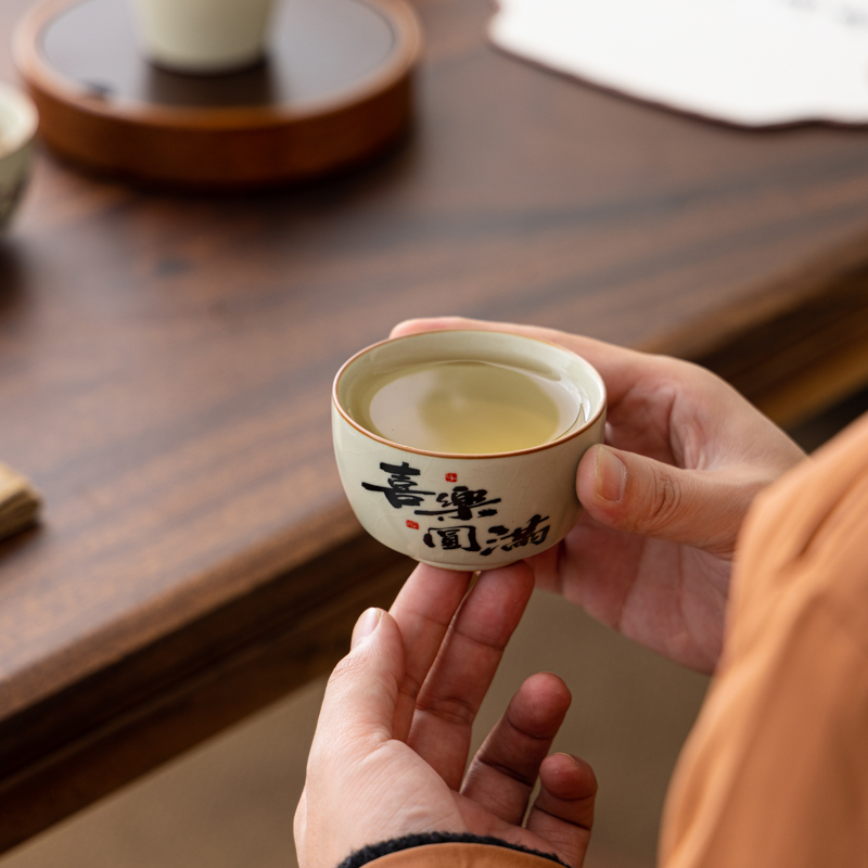 汝窑喜乐圆满茶杯主人杯个人专用高档家用喝茶品茗杯子陶瓷小茶盏