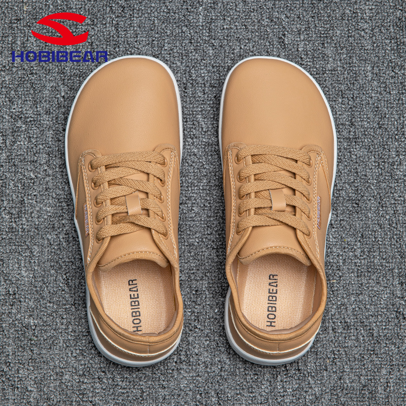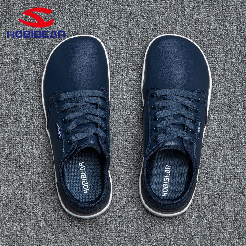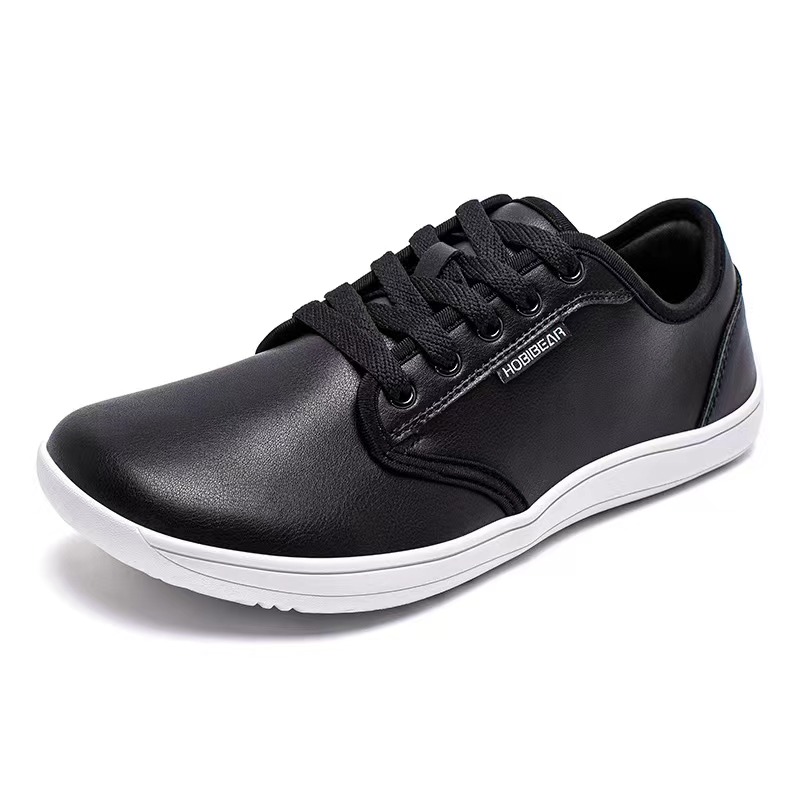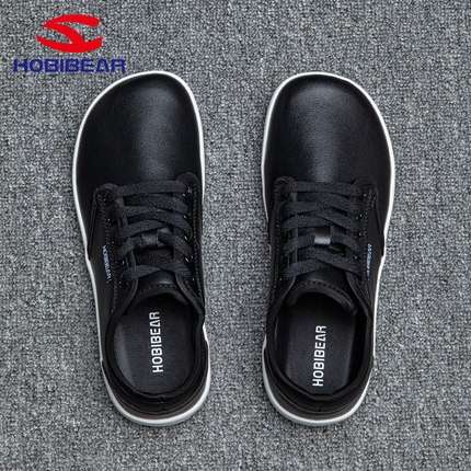 HOBIBEAR男士休闲秋季男款皮鞋4e宽楦大码男鞋47码黑色宽头赤足鞋
