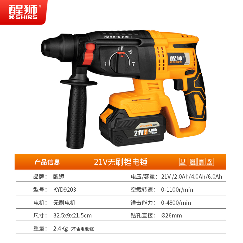 醒狮无刷大功率充电式电锤电镐