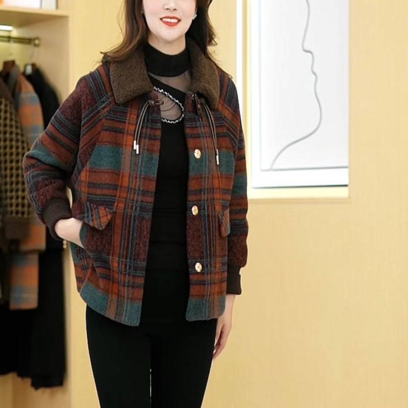 加棉加厚西装外套女呢子大衣中年女士大码妈妈秋冬装格子毛呢