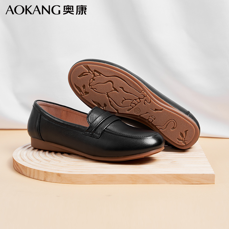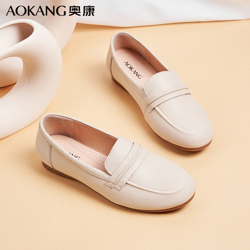奥康女鞋春秋复古乐福鞋舒适休闲真皮一脚蹬小皮鞋