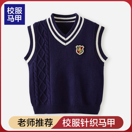 儿童针织马甲2025新款春秋季学院风男童背心女童坎肩马夹上衣校服