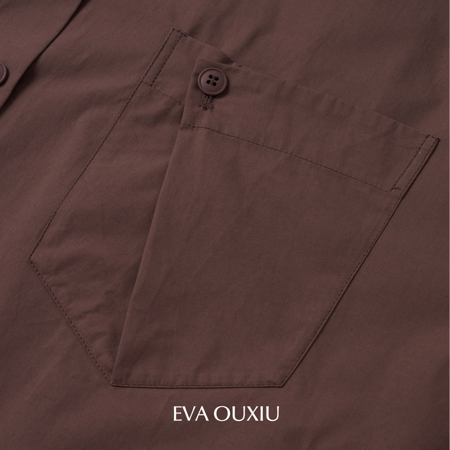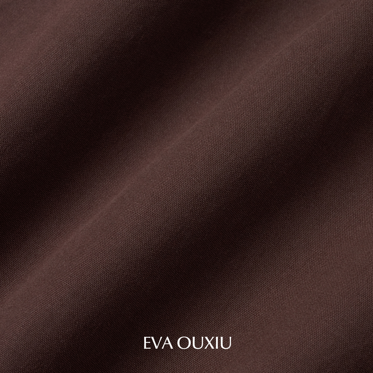 EVAOUXIU商场同款摩卡棕色高智感老钱风全棉衬衫宽松灯笼袖上衣女