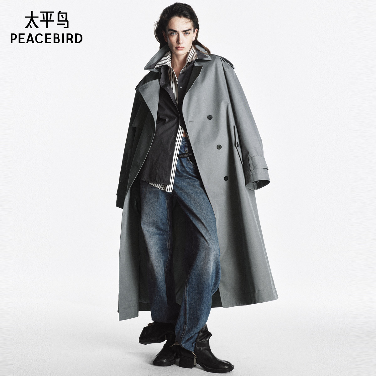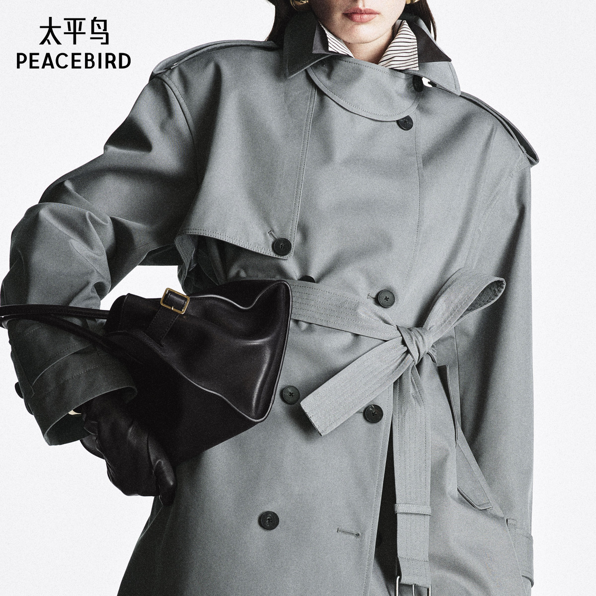 太平鸟大师系列高端通勤双排扣风衣外套女新款品质感A1BEF1396