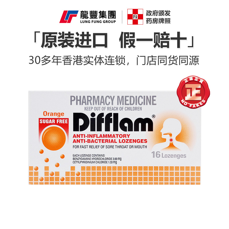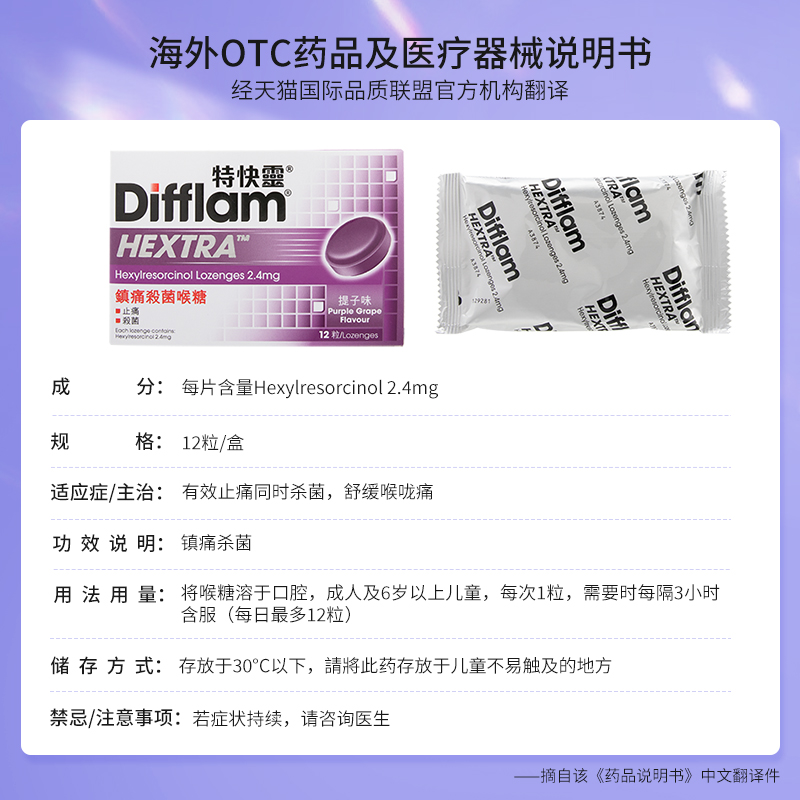 香港版Difflam特快灵镇痛杀菌喉糖提子味16粒抗菌喉咙痛润喉止痛