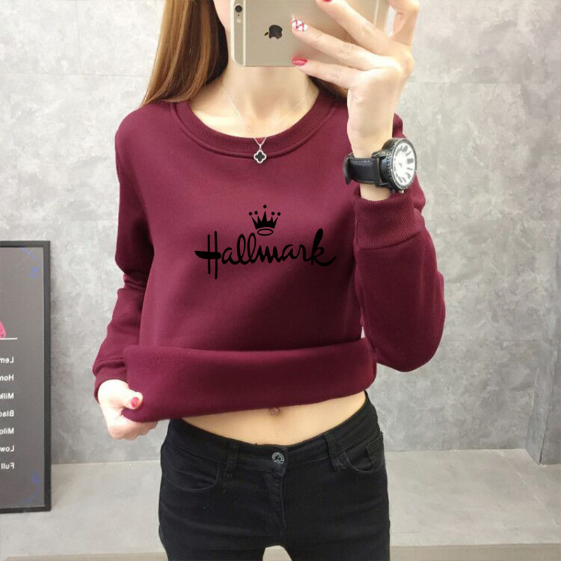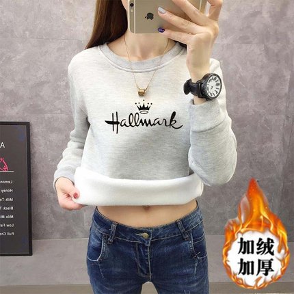 白灰色显瘦加绒卫衣女保暖打底衫