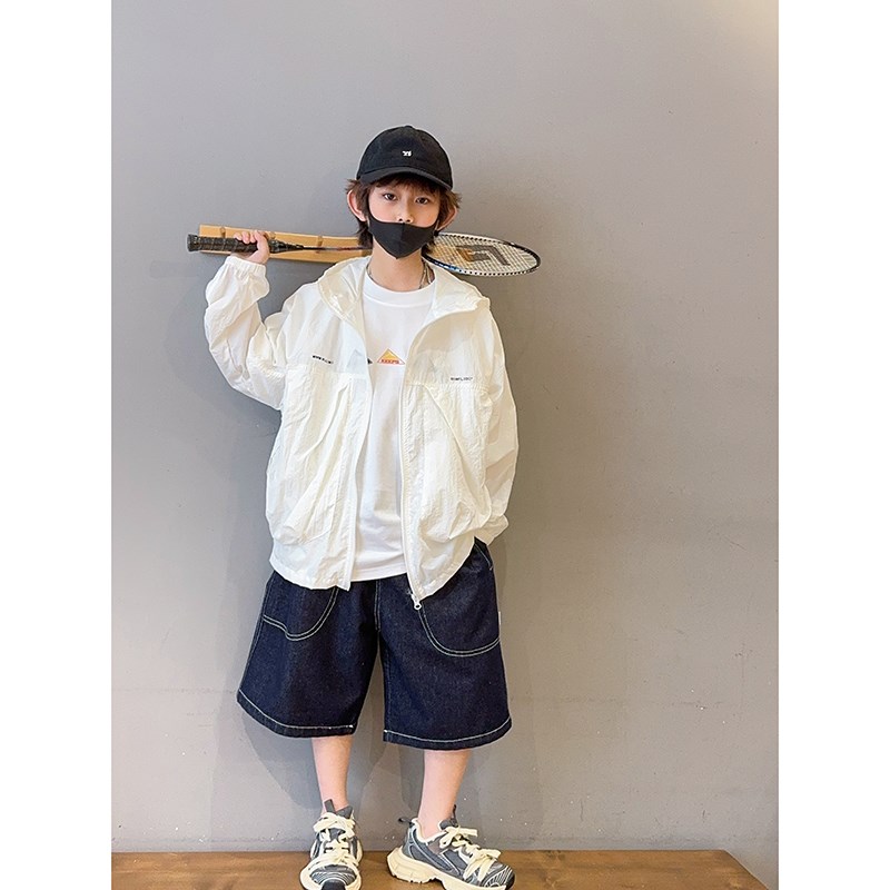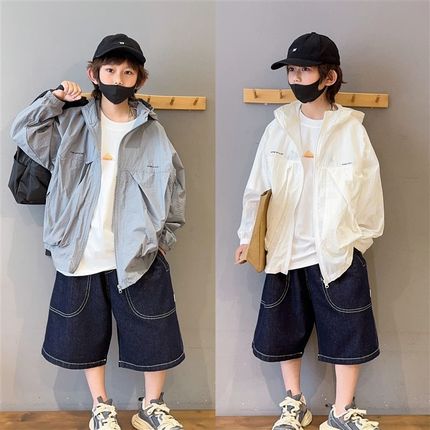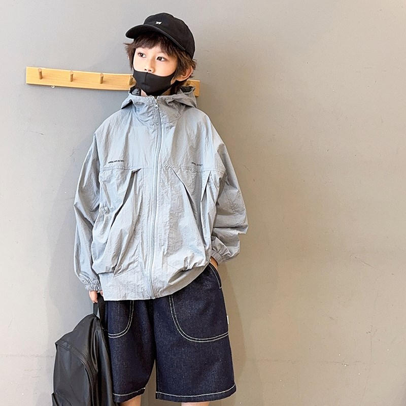 小殷同学男童夏季连帽空调防晒衫2025新款纯色轻薄款透气儿童外套