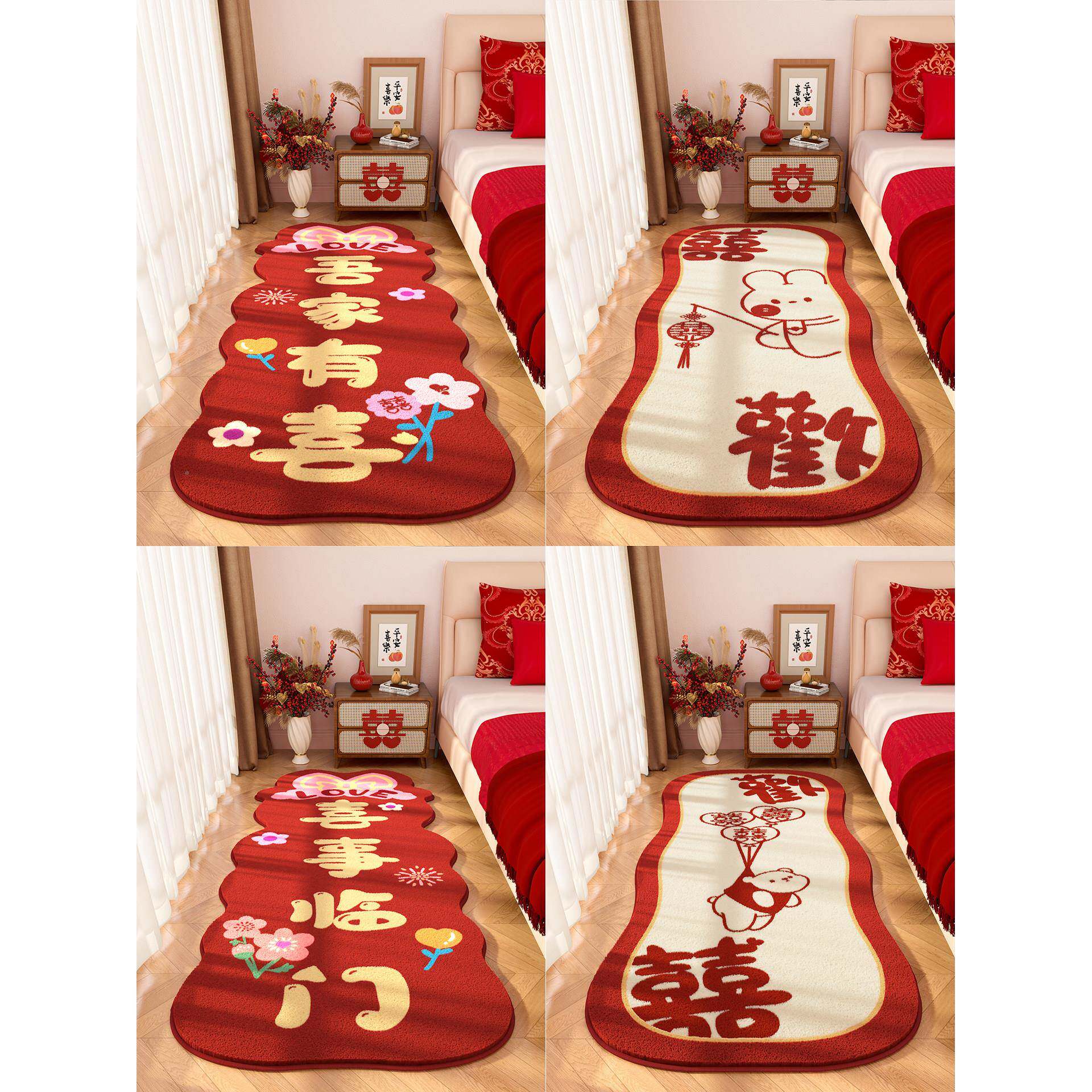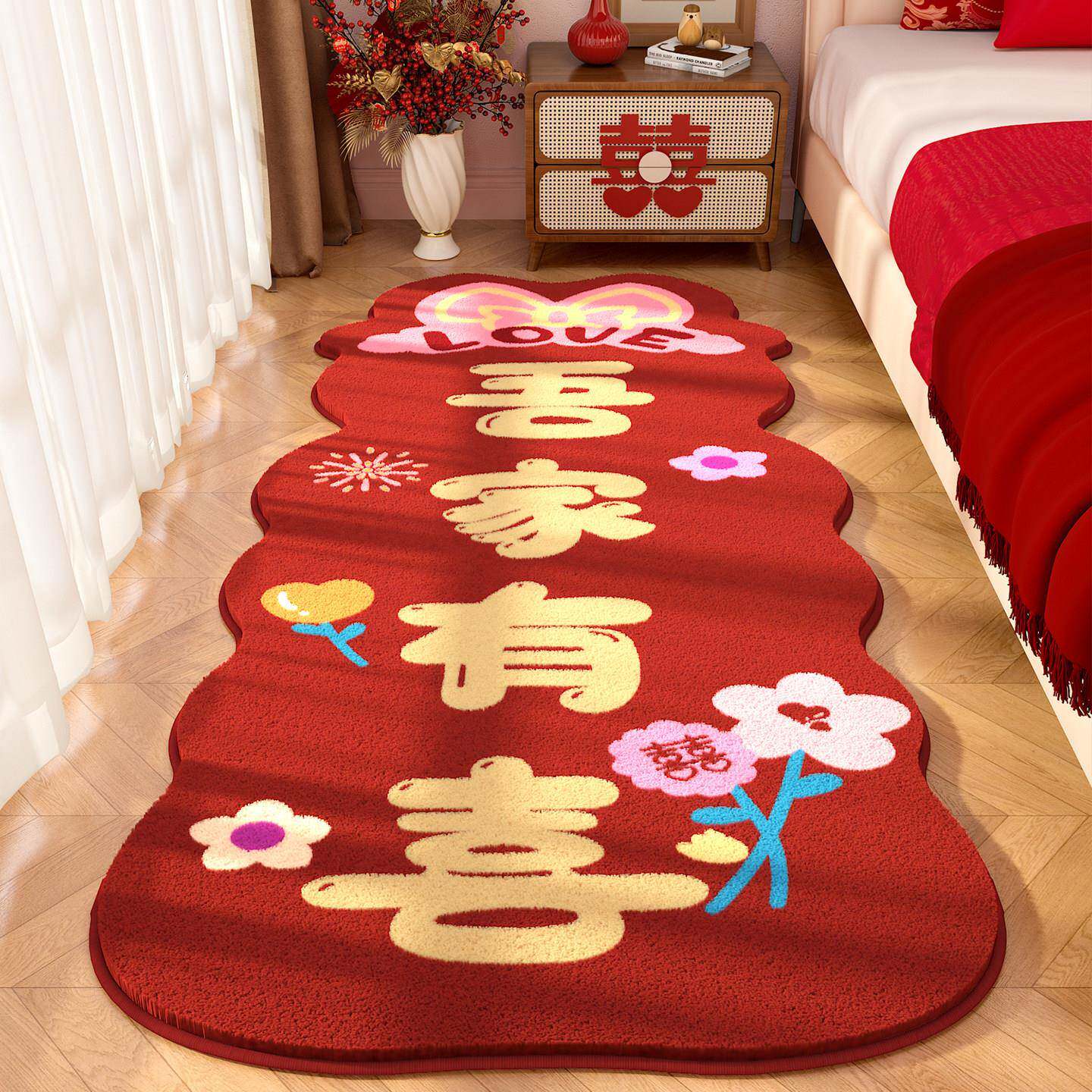 床边入毯结婚地门口喜MY959060庆户门房地垫地毯婚客厅卧室毯喜字