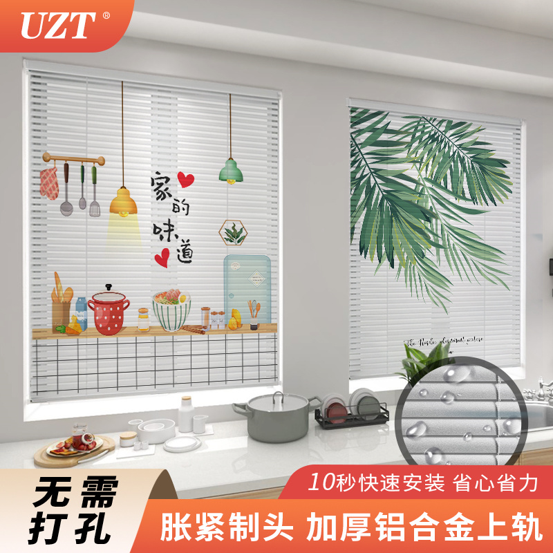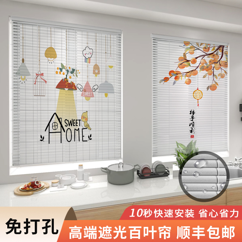 厨房百叶帘免打孔安装浴s室卫生间厕所防水防油升降铝合金遮光窗