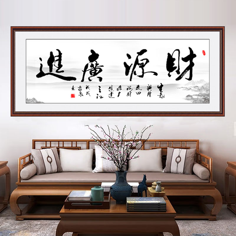 财源广进书法字画客厅自粘书房背景墙贴画办公室出租房宿舍装饰画