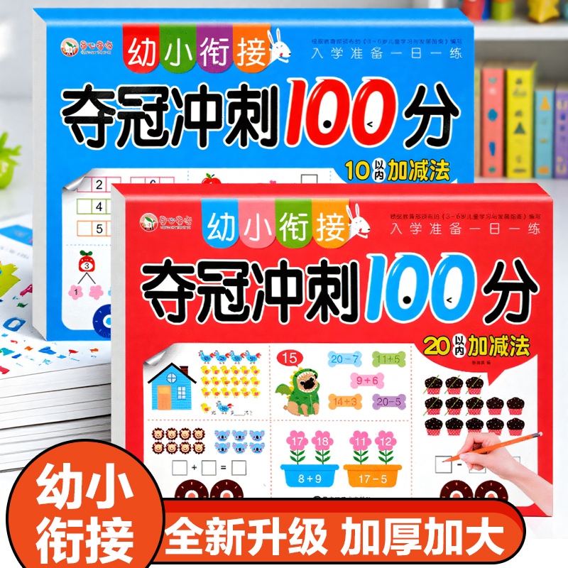 幼小衔接每日一练数学幼儿园中班大班每日一练暑假作业幼升小衔接幼儿练习册全套专用教材全套一日一练十10/20以内加减法天天练书