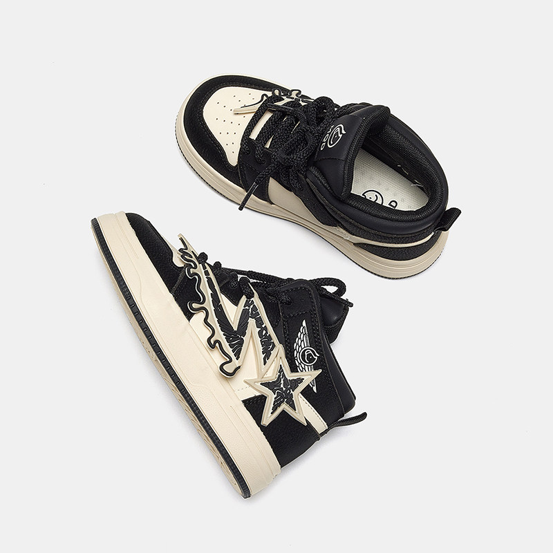 马骑顿童鞋儿童运动鞋春季2026新款高帮皮面户外女童男童板鞋大童