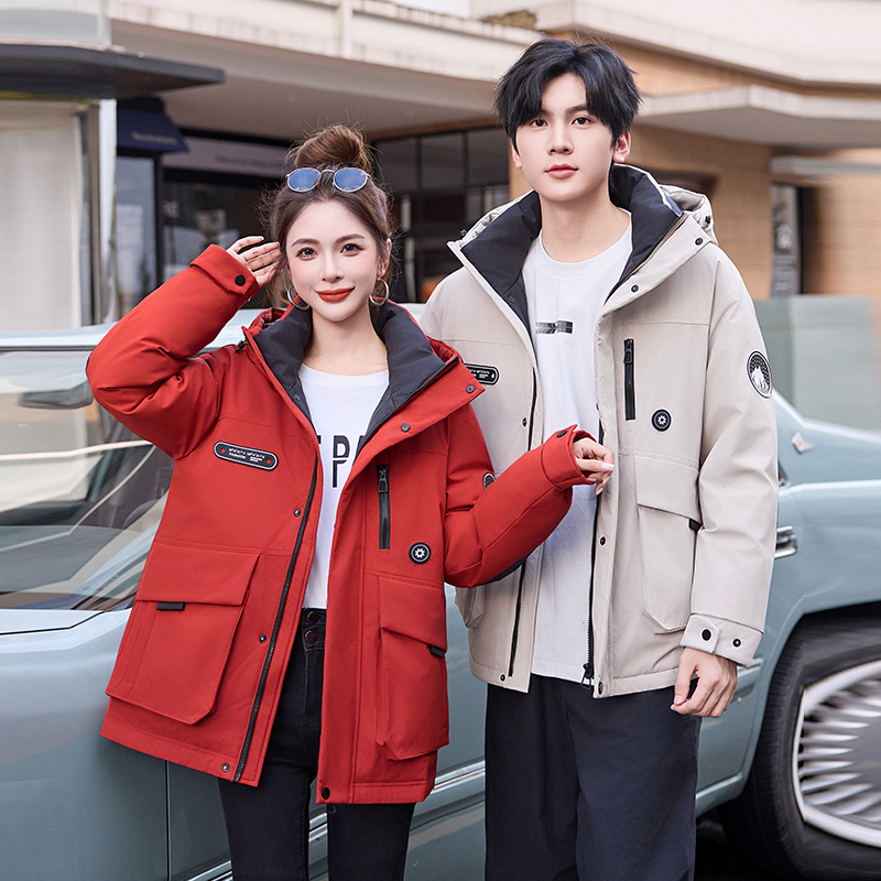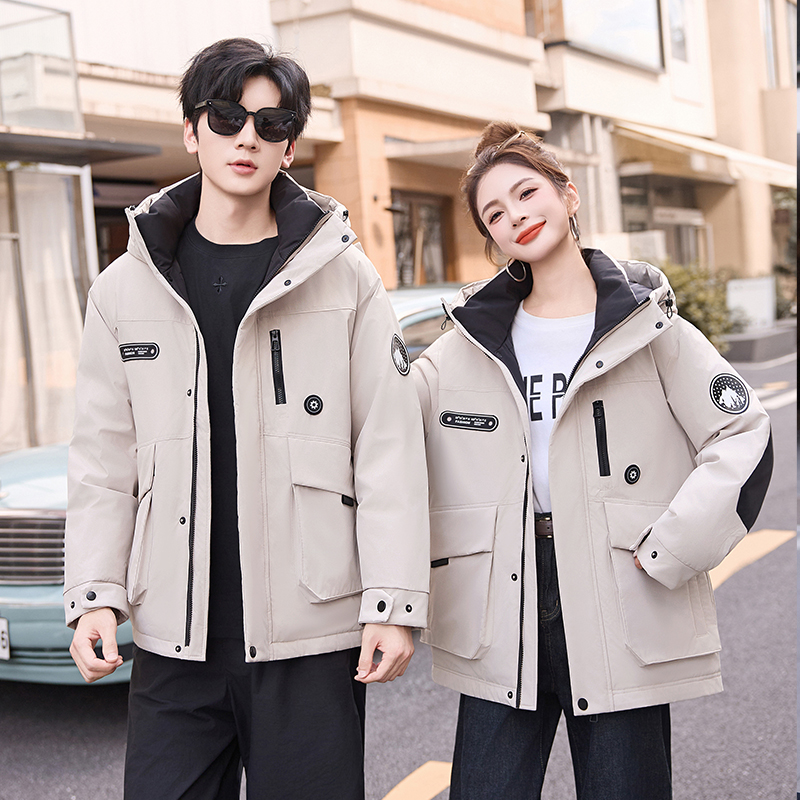 冬季新款加厚连帽工装宽松休闲男女同款情侣装棉衣外套女棉服棉袄