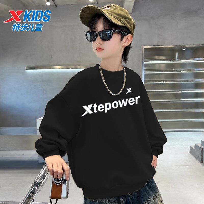特步童装男童卫衣春秋新款儿童大男孩加绒长袖圆领t恤针织衫上衣