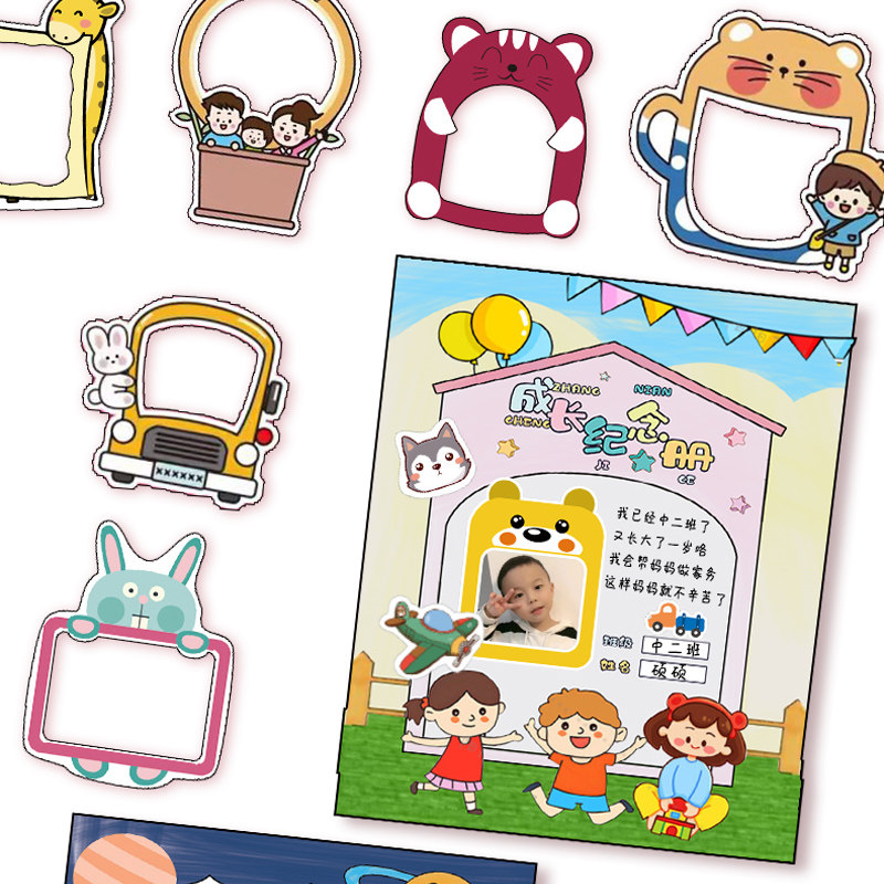 diy机关卡幼儿园成长档案儿童制作装饰材料相册记录手册手账贴纸