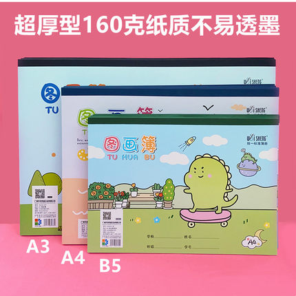 A4超厚图画簿小学生幼儿园不透墨绘画空白纸本水彩笔铅笔涂鸦画纸