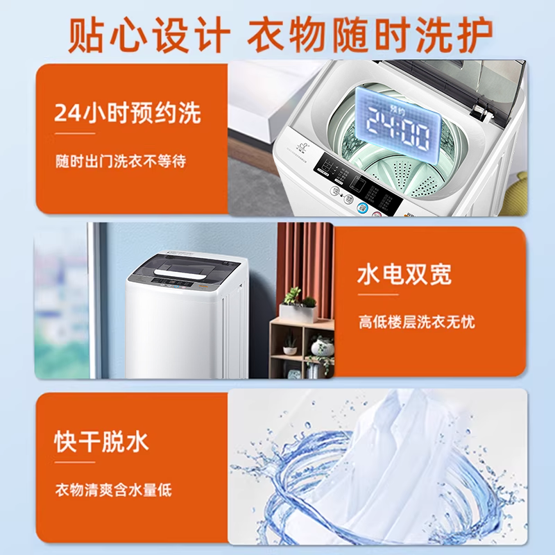 小鸭牌全自动洗衣机小型的5/10KG迷你波轮家用租房婴儿童洗脱一体