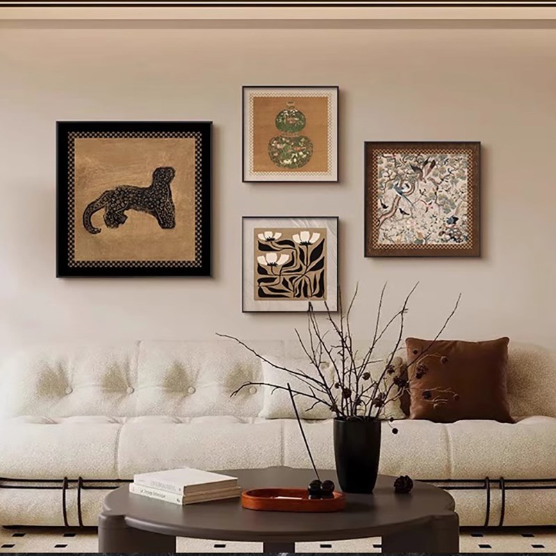 抽象画客厅中古风法式装饰画组合背景墙挂画2024新款沙发后墙壁画