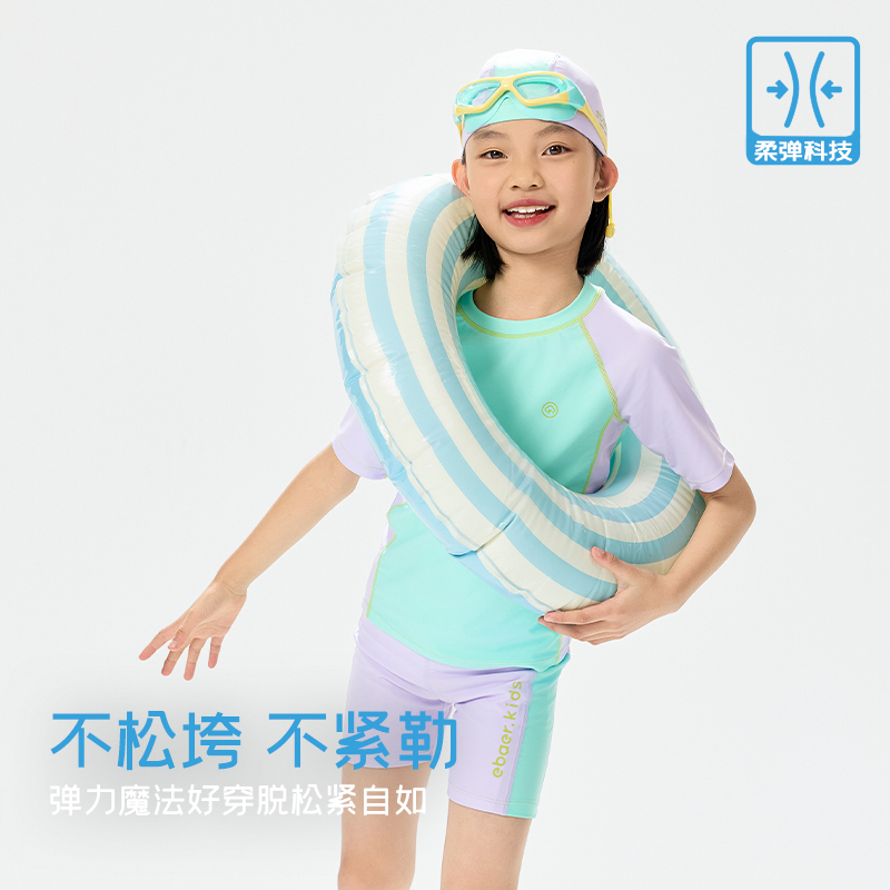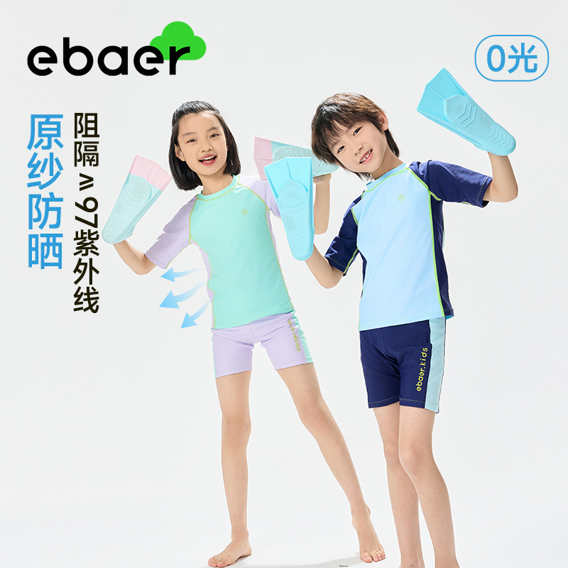EBAER儿童泳衣原纱防晒男童女孩分体短袖耐氯泳装2025新款泳衣裤