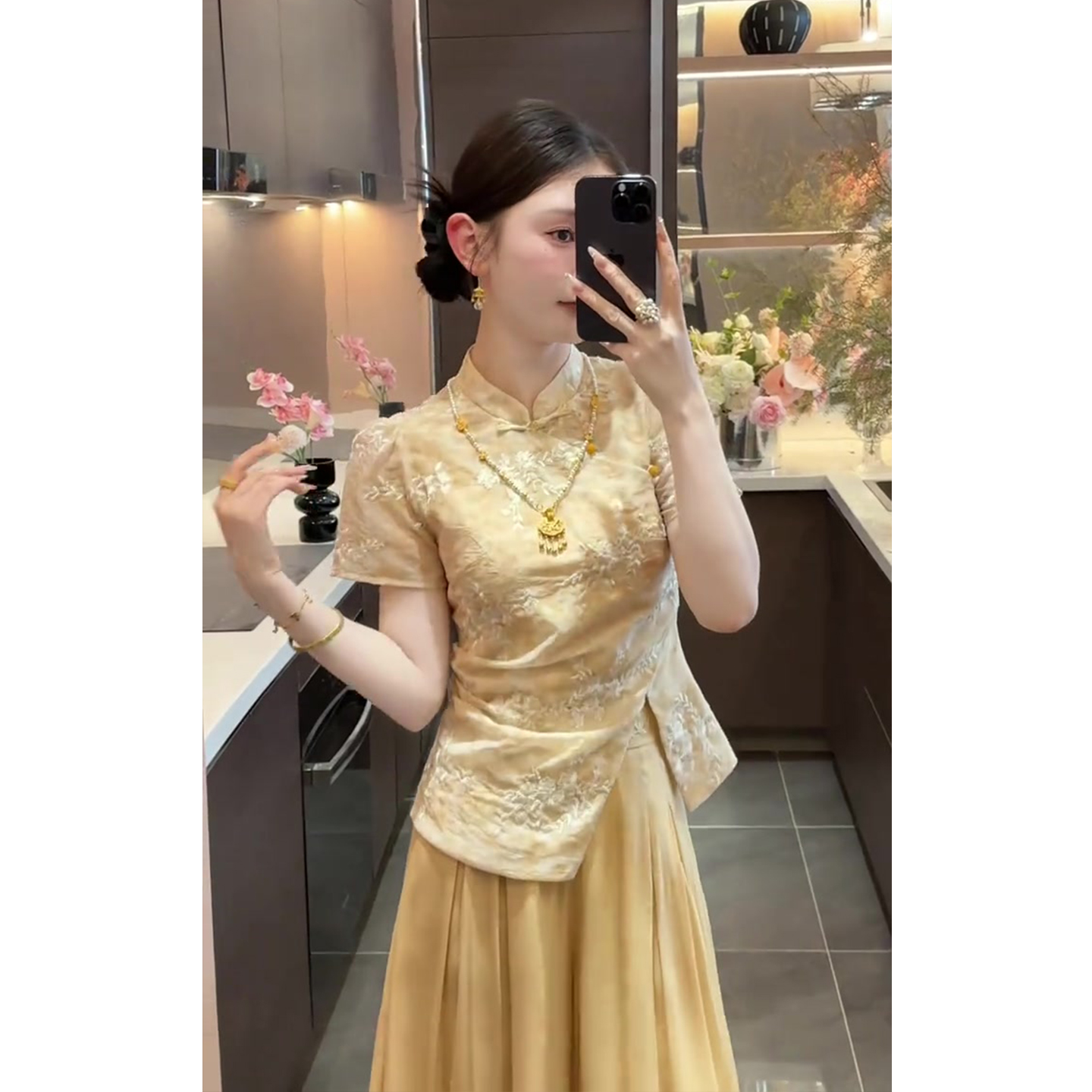新中式国风两件套女2025新款夏季复古盘扣衬衫显瘦休闲裤洋气套装